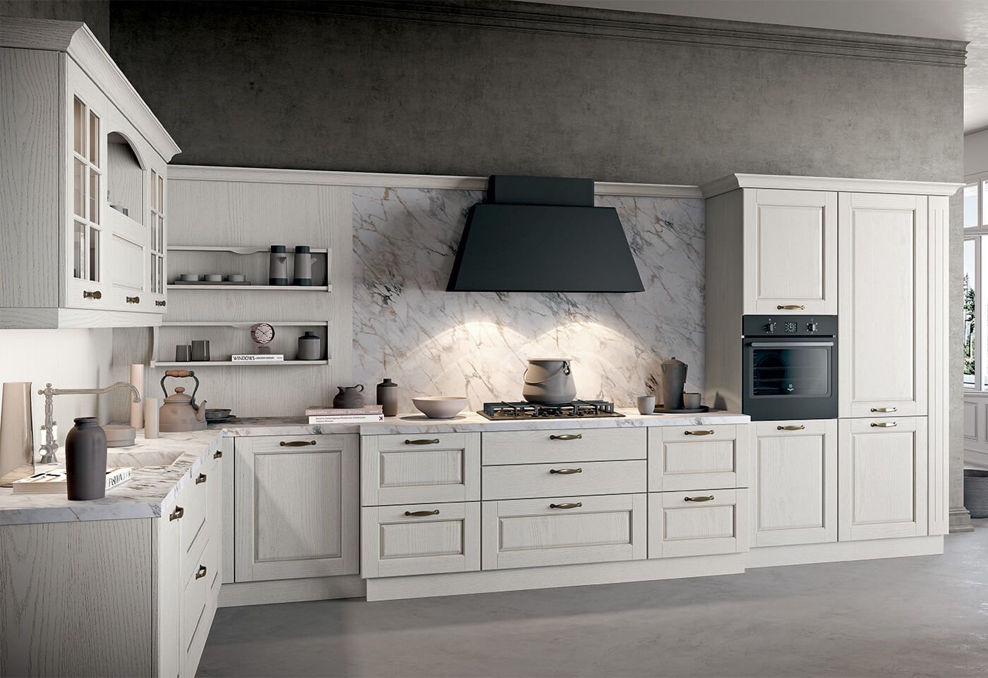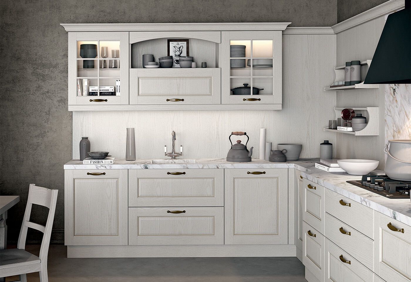 Asolo je elegantna kuhinja v klasičnem stilu. Lahkotnost modelu dajejo številni dekorativni elementi in zaokrožena vrata z masivnim okvirjem. Z njo lahko pričaramo prefinje ambient z zbiro nevtralnih tonov in elegantnih linij.
