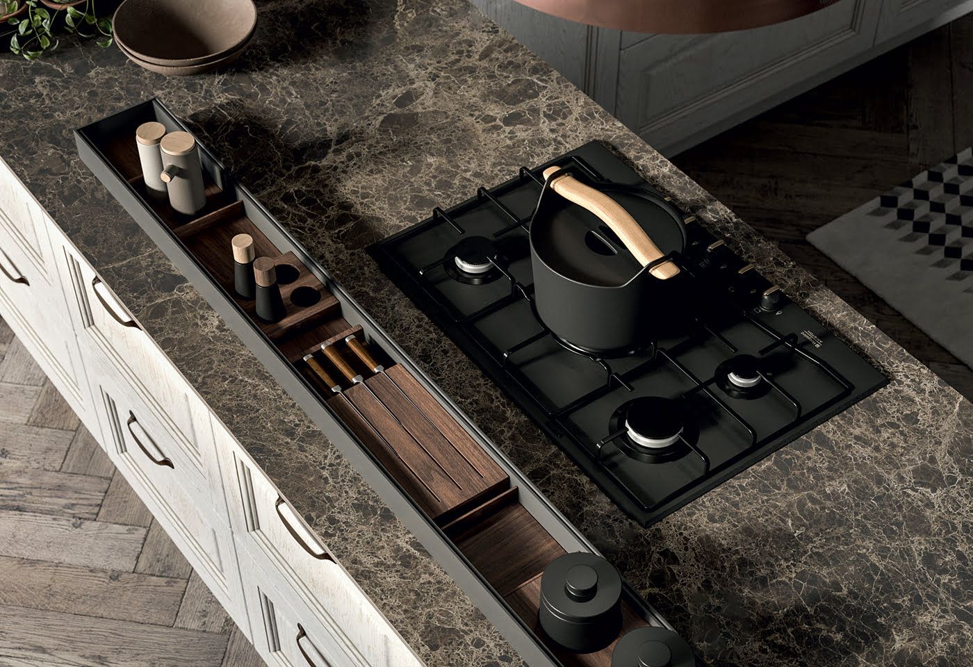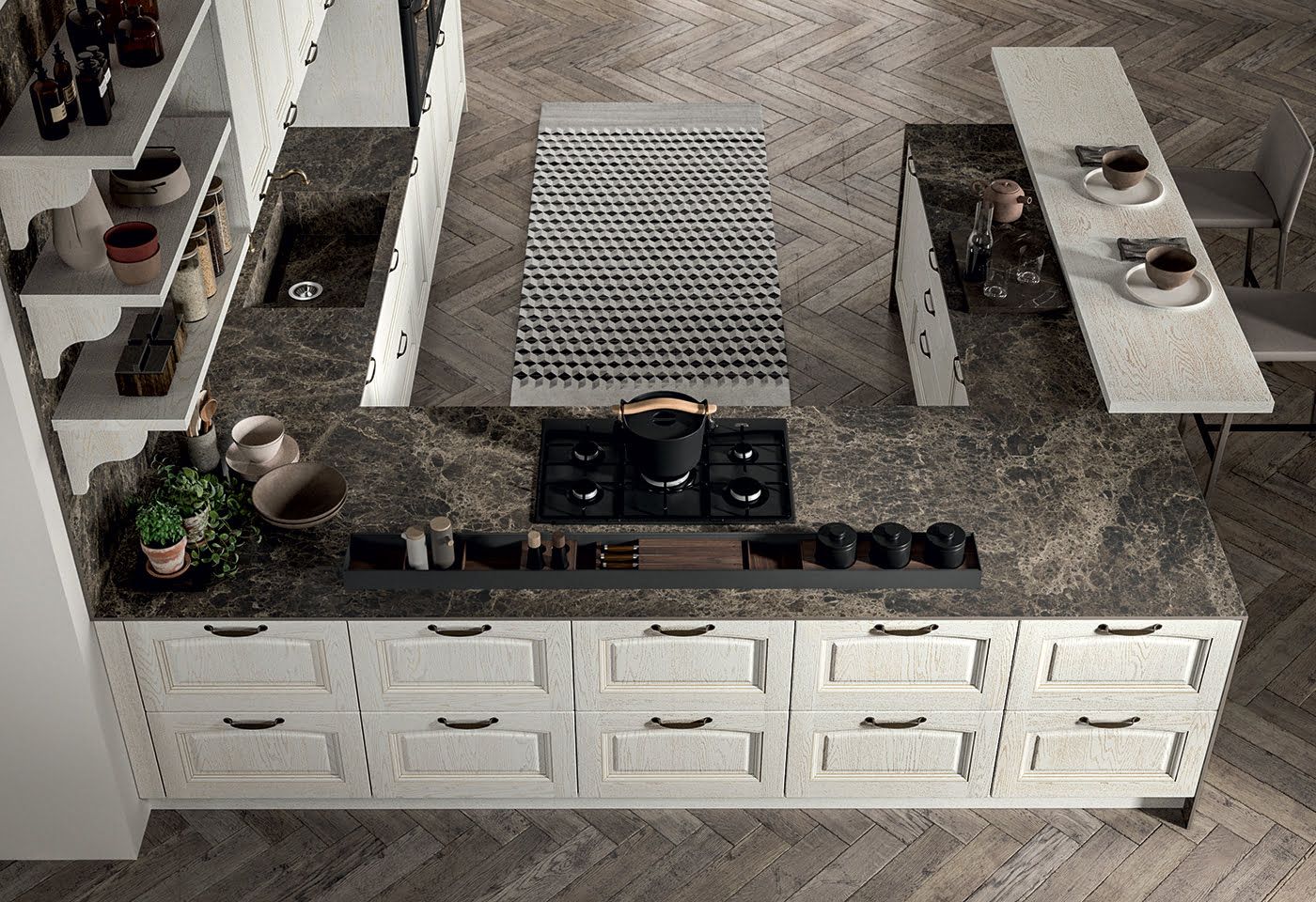 Emma je prefinjena kuhinja v klasičnem stilu. Vrata z masivnim okvirjem ponujajo širok izbor barv. Možna je tudi izbira dekorativnih steklenih insertov, ki še dodatno razgibajo kompozicijo. Model nam omogoča, da oblikujemo masivno kuhinjo, ki bo funkcionalna in aktualna.