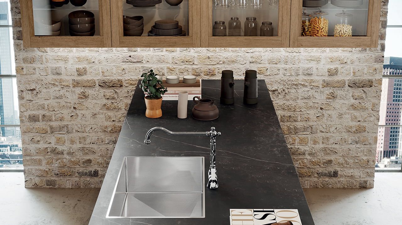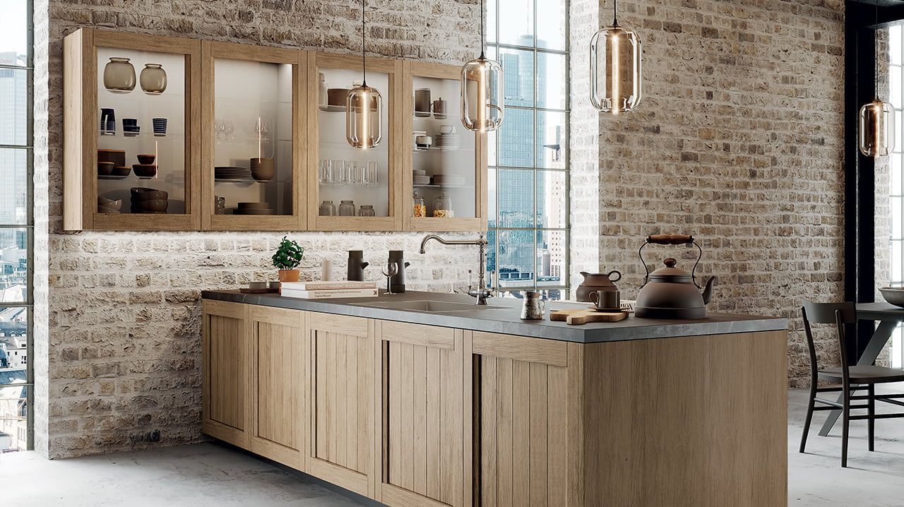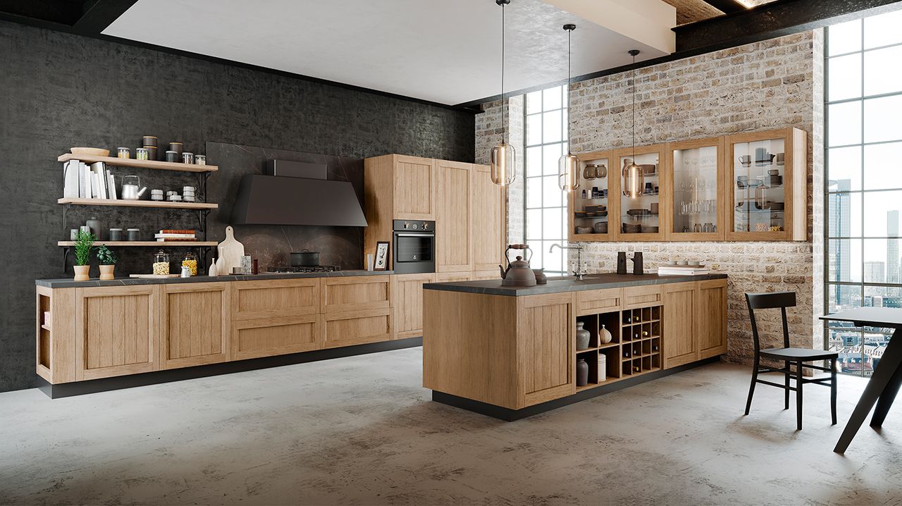 Frida je zelo prilagodljivi model klasične kuhinje, saj ponuja zelo širok izbor materialov. Od gladkih in stukturiranih lakiranih varat, do zanimivih lesenih dekorjev. Zelo eleganten je tudi integrirani ročaj na uokvirjenih masivnih vratih, ki daje kuhinji posebni pečat.
