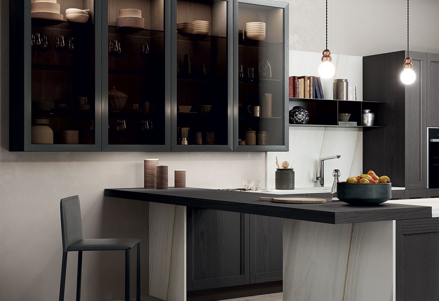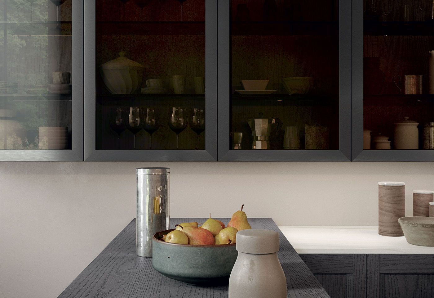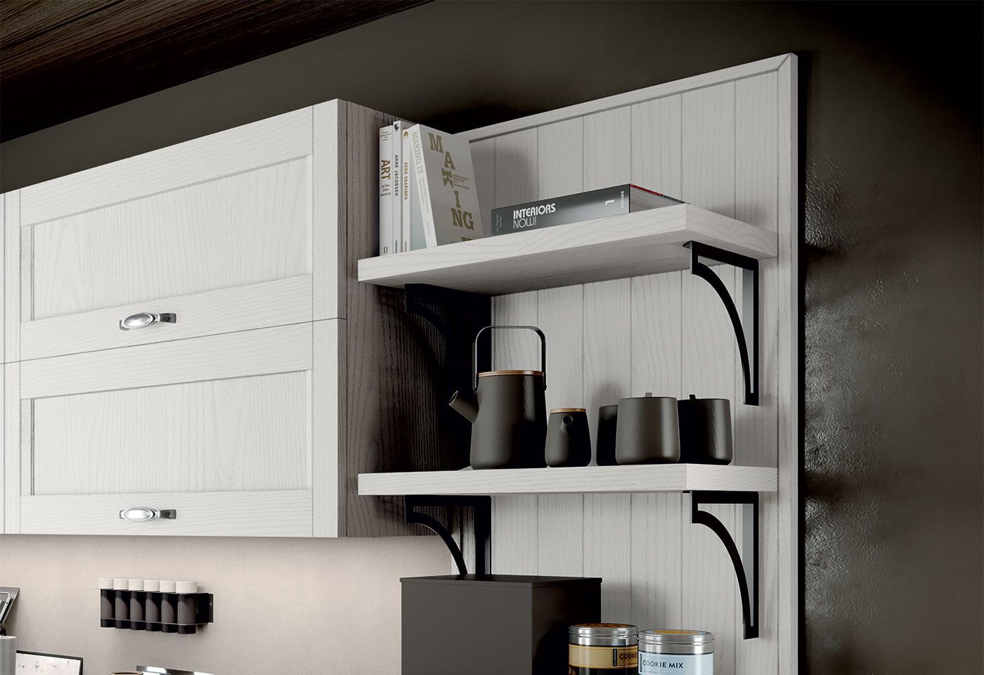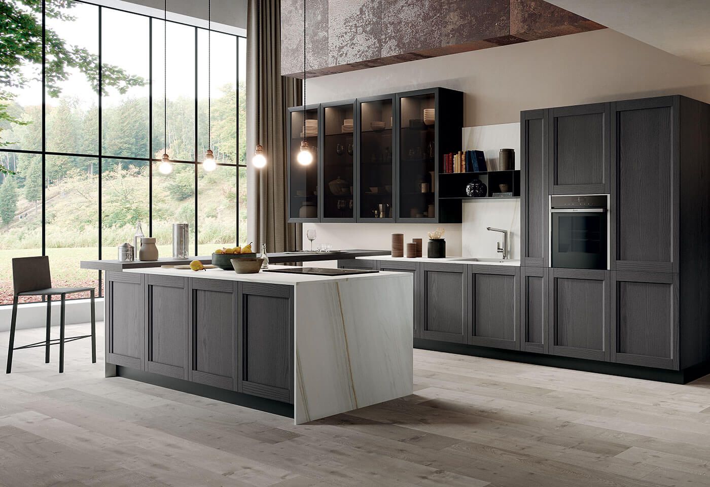 Izrazito prilagodljiva kuhinja zahvaljujoč številnim izvedmam izgleda vrt, ki nudijo kuhinji ogromno zanimivih rešitv. Masivni okvir vrat z integriranim ročajem naredi model izjemno prilagodljiv vsem barvnim izvebam.